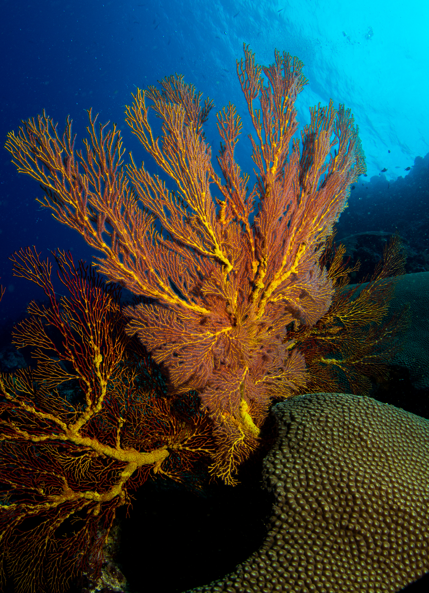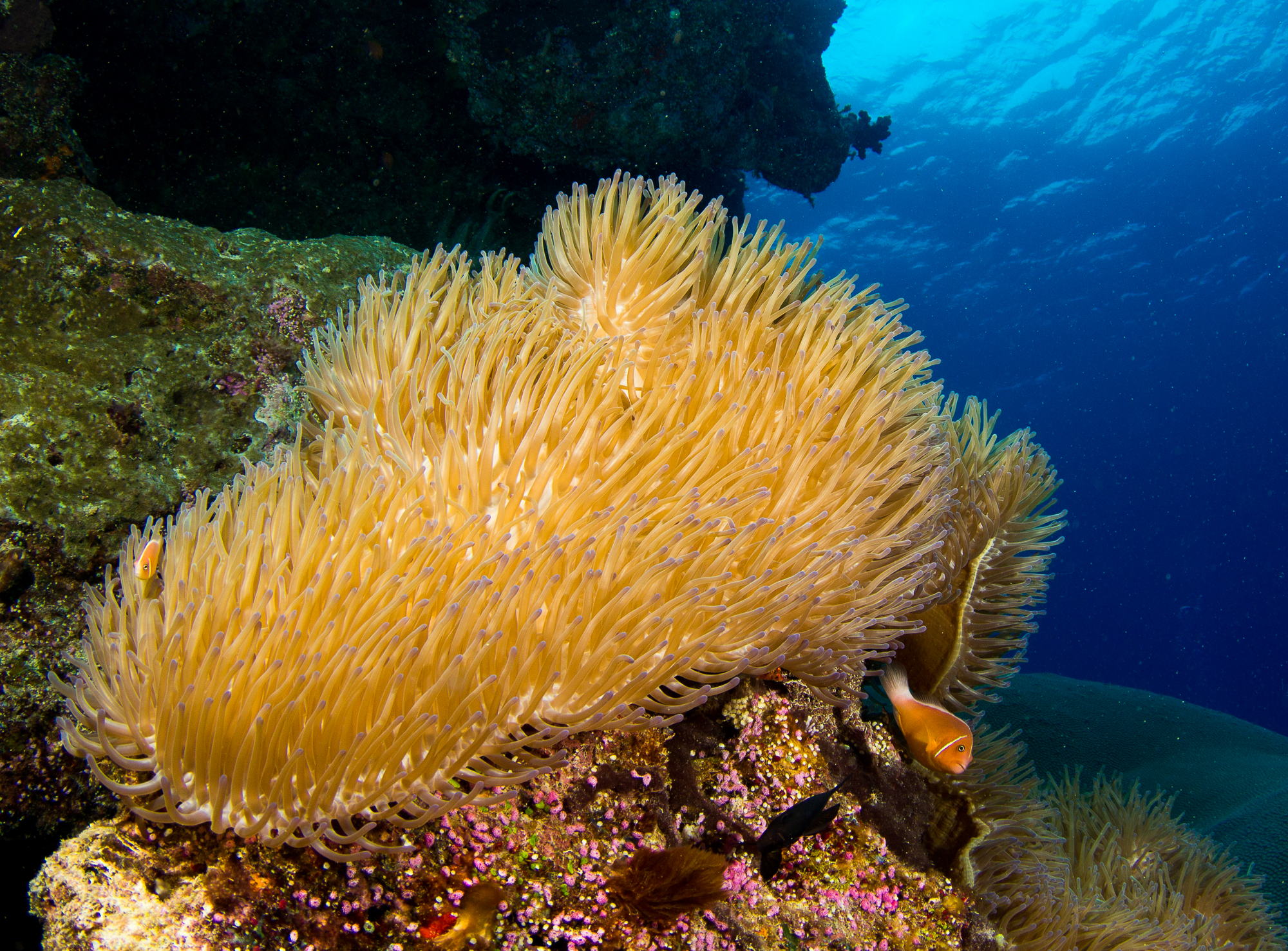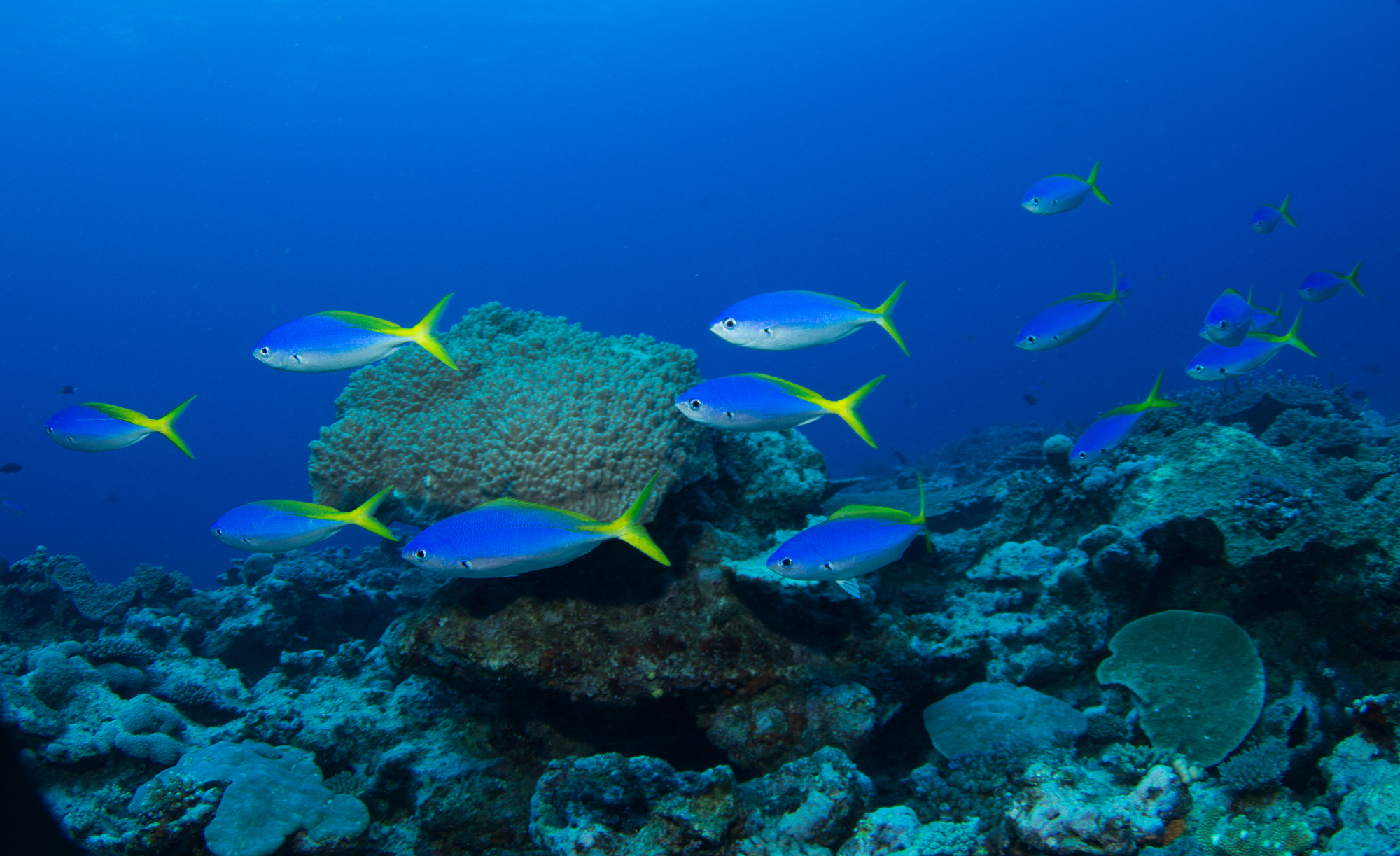 High currents can sweep in and out of the channel bringing nutrients to fish, corals and sharks alike.